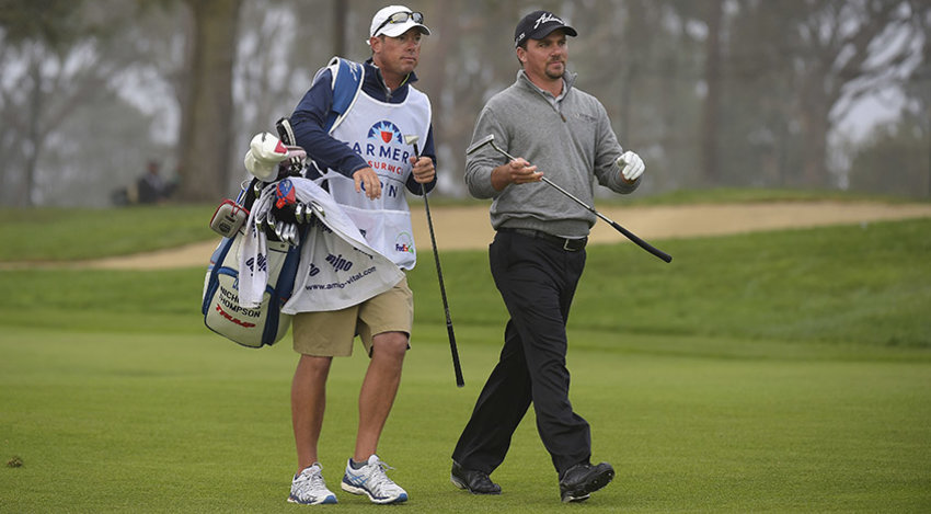Það er bróðir Lexi Thompson, Nicholas, sem er í efsta sæti í hálfleik á Farmers Insurance Open, á Torrey Pines, La Jolla, Kaliforniu.