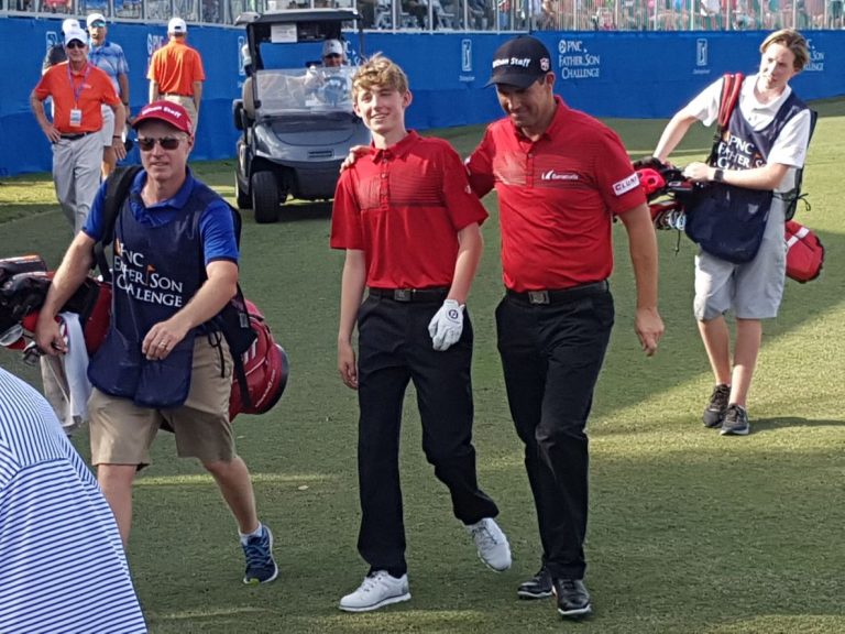 Paddy Harrington, sonur írska kylfingsins Padraig Harrington er kominn með golfbakterínua eftir að hafa spilað með föður sínum í Father-and-Son Challenge í Orlando, en mótið er á vegum PGA.
