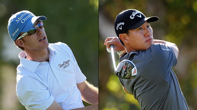 Báðir eru þeir búnir að spila á samtals 14 undir pari, 130 höggum (63 67). Aðeins 1 höggi á eftir þeim eru Darron Stiles, Scott Stallings og Richard H. Lee.
