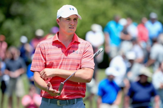 Jordan Spieth virðist ekkert kunna vel við sig við 16. holu í Firestone Country Club.