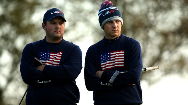 during the Morning Fourballs of the 2014 Ryder Cup on the PGA Centenary course at the Gleneagles Hotel on September 27, 2014 in Auchterarder, Scotland.