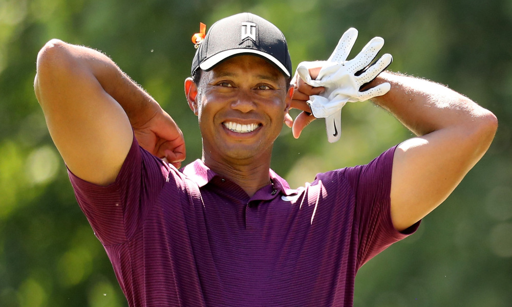 Högg dagsins hjá Tiger kom á par-4 18. holunni og var fyrir fugli af 33 m fjarlægð .