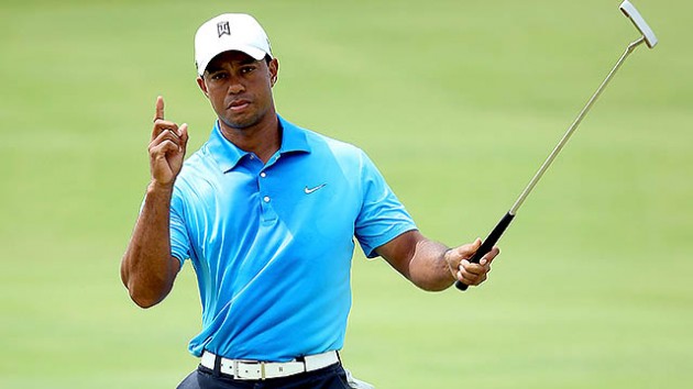 Tiger kom sér í 1. sætið á PGA Championship risamótinu í dag og nú spyrja menn sig hvort hann sé tilbúinn að vinna 15. risamót sitt? Með sigri myndi hann ekki aðeins saxa á forystuna sem Jack Nicklaus hefir í 18 risamótameti sínu, heldur einnig komast í 1. sæti heimslistans að nýju.