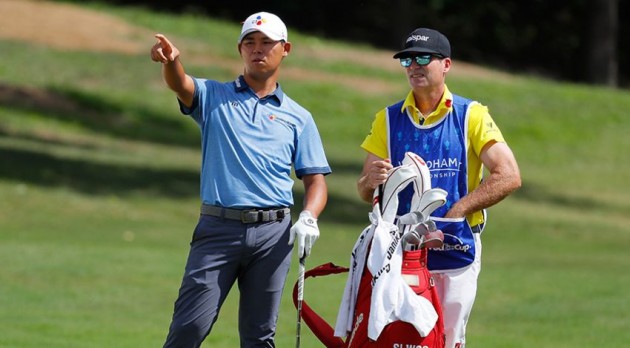 Si-Woo Kim, 21 árs, frá Suður-Kóreu sigraði á sínu fyrsta móti á PGA Tour nú um helgina þegar hann landaði sigri í Wyndham Championship.