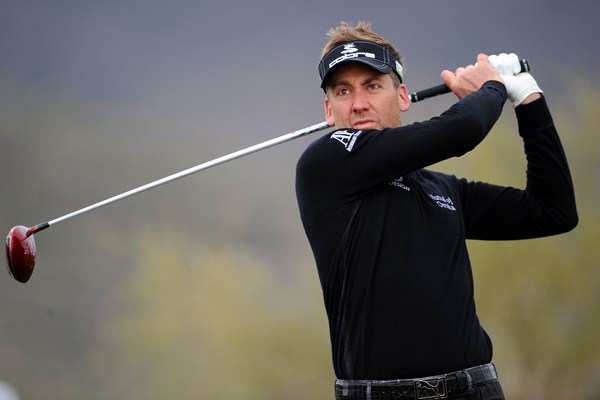 Ian Poulter var kominn 3 yfir í leik sínum við Stephen Gallacher áður en leik var frestað á Accenture heimsmótinu í holukeppni, en Englendingurinn átti eftir að jafna metinn við óþokka nokkurn eftir að hafa fengið snjóbolta í sig.