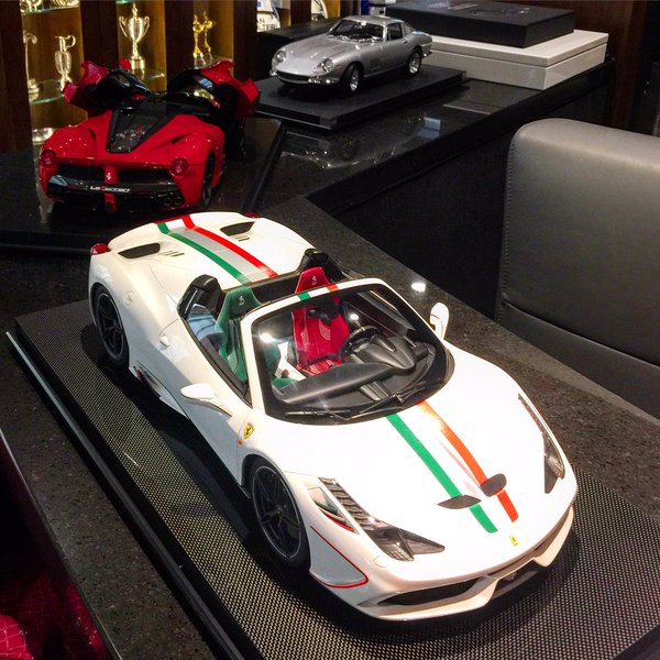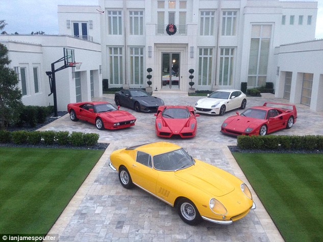 Og hann á líka orðið býsna gott safn Ferrari bíla, s.s. sjá má af mynd hér að neðan: