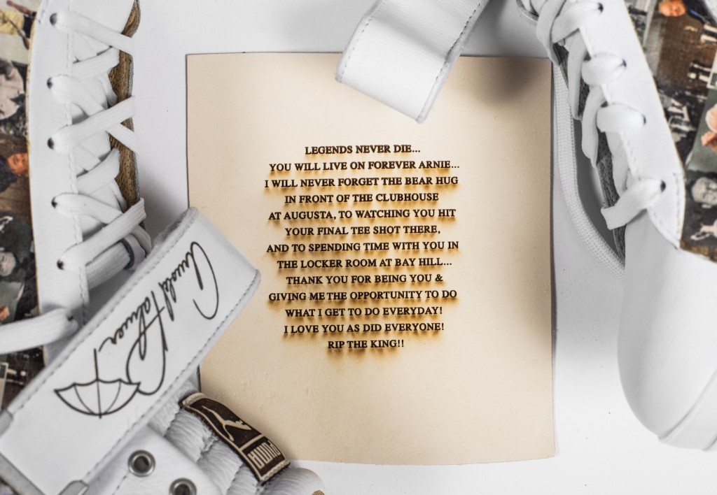 Puma hefir framleitt tvo pör af Puma Ignite Hi-Tops golfskóm, þar sem Arnie er minnst í máli og myndum.