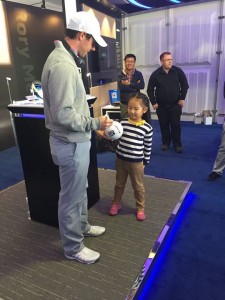 Rory er þekktur fyrir að vera góður við áhangendur sína – Nú er hann í Kína og þar áritaði hann fyrir litlan kínverskan kvenáhanganda