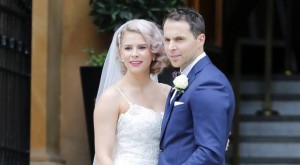 Holly og Jeff á brúðkaupsdaginn 7. apríl 2016 – athygli vekur að Holly og Rory giftast bæði í aprílmánuði.