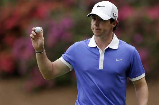 Hann fékk fugla á 2. holuna á Augusta National og fylgdi því eftir með öðrum fugli á Juniper, sem er par-3, 6. holan, þar sem Jamie Donaldson, sem sigraði á Irish Open fór holu í höggi 3 tímum fyrr. En síðan fékk Rory skolla, sem hann tók aftur með fugli á 9. holu.