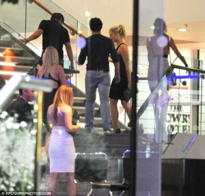 Hann og einn félagi hans voru í skapi til að halda upp á alla velgengnina og sást til þeirra í fylgd 4 fallegra stúlkna í Lowry hóteinu in Manchester kl. 3 s.l. sunnudag.