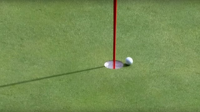 Á 1. hring missti DJ rétt svo af ás og má sjá það atvik með því að SMELLA HÉR: