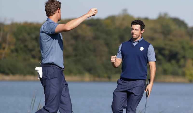 Líka hversu vel THORO – þ.e. nýliðinn Thomas Pieters og nr. 3 á heimslistanum, Rory McIlroy voru að spila saman, en þeir unnu leik sinn gegn þeim Dustin Johnson og Matt Kuchar 3&2.