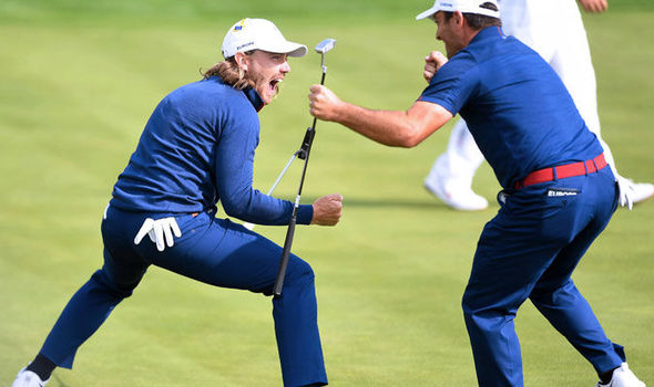 4 Francesco Molinari og Tommy Fleetwood unnu Justin Thomas og Jordan Spieth 5&4