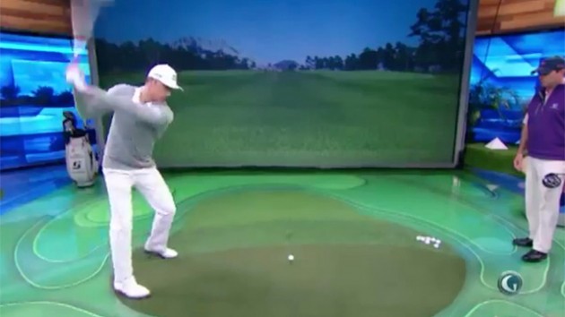 Bandaríski golffréttaþátturinn Golf Channel hefir verið að fá þekkta kylfinga til sín og fá þá til þess að slá högg í golfhermi, sem er á settinu.