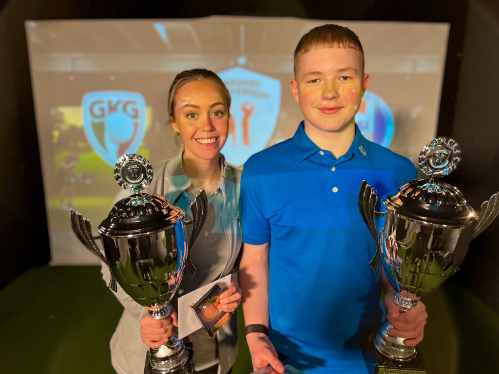 Fyrstu landsmótsmeistarar í golfhermum eru þau Saga Traustadóttir, GKG og Gunnlaugur Árni Sveinsson.