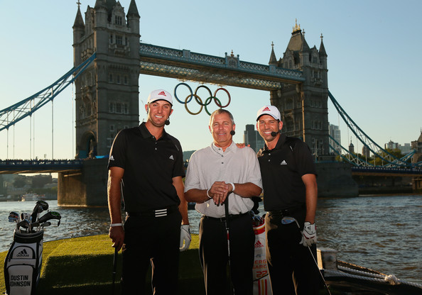 Kylfingarnir Sergio Garcia, frá Spáni og Bandaríkjamaðurinn Dustin Johnson vöktu athygli fólks á því að golf er keppnisgrein á Olympíuleikinum með því að vera úti á miðri Thamesá og slá golfboltum á fljótandi flöt.  Sergio Garcia vann keppnina milli þeirra tveggja en 3 af 5 boltum hans lentu á flötinni.