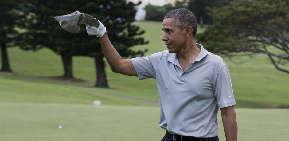 Barack Obama, Bandaríkjaforseti er nú kominn í frí á Hawaii og er tekinn til við uppáhaldsiðju sína … að spila golf.