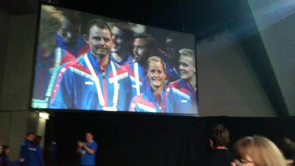Lárus Blöndal forseti ÍSÍ og Marc Theisen, fulltrúi evrópsku Ólympíunefndarinnar, héldu ávörp en keppnin hefst í dag.