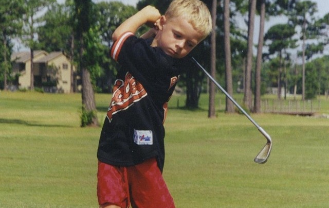 Nýbakaður Masters meistari Jordan Spieth byrjaði ungur í golfi, aðeins 1 1/2 árs – þ.e. fyrir 19 1/2 ári með plastkylfum, til þess að halda honum uppteknum meðan yngri bróðir hans fæddist.