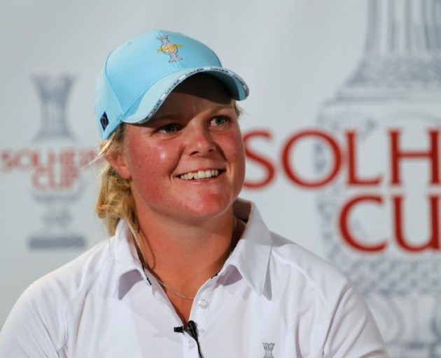 Brittany Lang og Michelle Wie unnu Suzann Pettersen og Beatriz Recari 2&1, en þetta er fyrsti ósigur Pettersen í þessari Solheim bikars keppni.