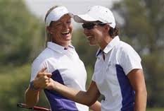 Suzann Pettersen og Carlota Ciganda í liði Evrópu unnu Stacy Lewis og Lexi Thompson 1&0.