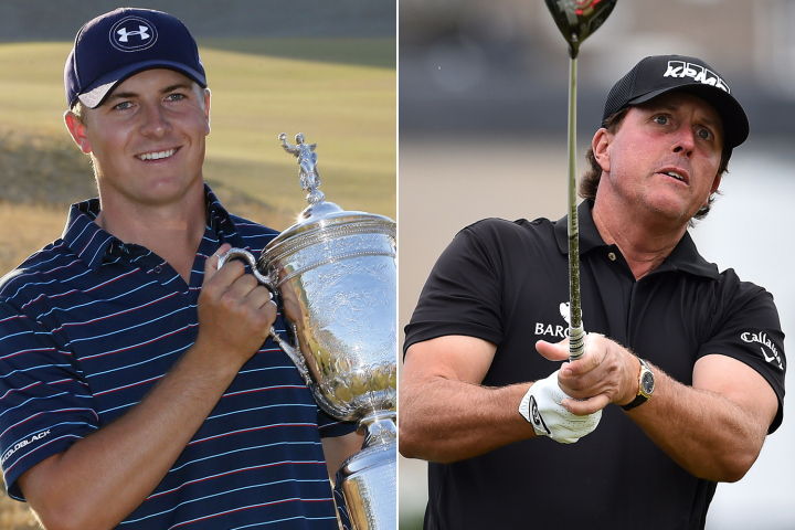 Phil hefir nefnilega 6 sinnum orðið í 2. sæti í Opna bandaríska og hefir aldrei á ferli sínum tekist að vinna sigurgrip mótsins, s.s. flestir vita; en Spieth er ríkjandi meistari Opna bandaríska.