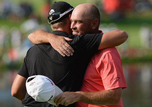 „Ég átti ekki mikið högg á bakvið trén þannig að ég fór aðeins aftar og átti yndislegt högg með 6-járninu,“ sagði Stenson, sem fékk skolla á holuna og lauk hringnum á 2 undir pari, 70 höggum. Thomas Björn spilaði 1. hring á sléttu pari, 72 höggum.