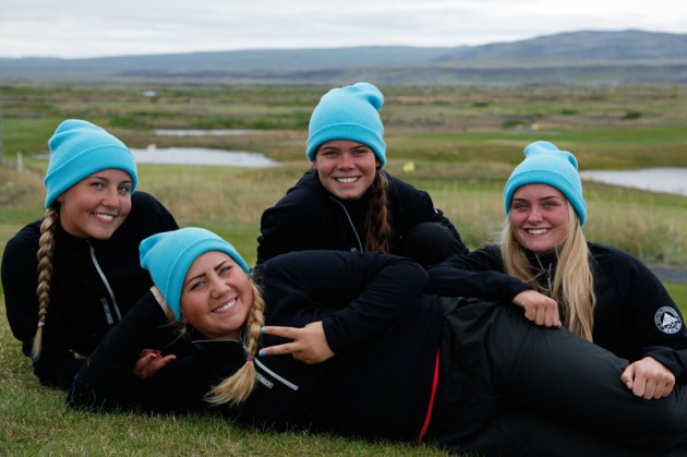 Íslandsmeistarar í A-sveit Keilis í sveitakeppni GSÍ 2012 í stúlknaflokki. F.v.: Anna Sólveig Snorradóttir, Högna Kristbjörg Knútsdóttir, Sara Margrét Hinriksdóttir og liggjandi fyrir framan Saga Ísafold Arnarsdóttir. Mynd: Helga Laufey Guðmundsdóttir Sveitakeppni unglinga: A-Sveit GK sigraði í flokki 18 ára og yngri stúlkna í Þorlákshöfn