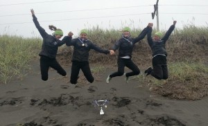 Sigursveit GR í flokki 15 ára og yngri stelpna í svarta sandinum í Þorlákshöfn. F.v.: Saga Traustadóttir, Eva Karen Björnsdóttir. Karen Ósk Kristjánsdóttir og Gerður Hrönn Ragnarsdóttir. Mynd: Í einkaeigu Sigursveit GR í flokki 15 ára og yngri stelpna í svarta sandinum í Þorlákshöfn. Mynd: Í einkaeigu