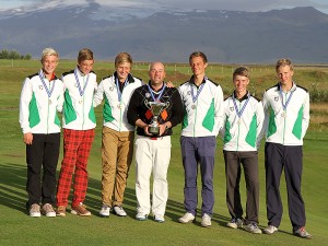 Íslandsmeistarar í sveitakeppni GSÍ í flokki 15 ára og yngri drengja – A-sveit Golfklúbbsins Keilis í Hafnarfirði, skipuð 4 Íslandsmeisturum. F.v. : Atli Már Grétarsson, Helgi Snær Björgvinsson, Birgir Björn Magnússon (heldur á Íslandsmeistaraverðlaunagripnum), Henning Darri Þórðarson og Gísli Sveinbergsson. Lengst til vinstri er liðsstjóri og þjálfari drengjanna Sigurpáll Geir Sveinsson. Mynd: gagolf.is