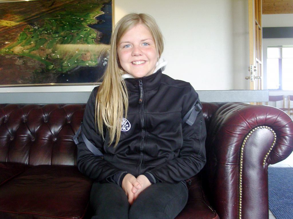 Hver er þessi 14 ára stelpa, sem prýðir forsíðumynd fréttarinnar kunna einhverjir að spyrja? Jú, þetta er Eva Karen Björnsdóttir, GR, sem var kylfuberi bróður síns, klúbbmeistara GR, 2011, Andra Þórs Björnssonar, á 2. degi Örninn Golfverslun 1. mótinu á Eimskipsmótaröðinni, 27. maí 2012. Eva Karen dró deginum þar áður í rokinu fyrir vinkonu sína Ragnhildi Kristinsdóttur, GR, 14 ára, en Ragnhildur var næstyngsti þátttakandinn í mótinu, aðeins Óðinn Þór Ríkharðsson, GKG, er nokkrum mánuðum yngri og sá yngsti sem þátt tók. Ragnhildur var hins vegar yngst af kvenkylfingunum 26, sem þátt tóku í mótinu.
