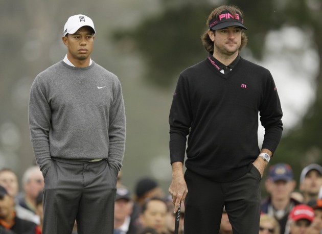 Báðir lentu í smá bið á Bridgestone Invitational mótinu og notaði Tiger tímann til að brjóta saman pappírsflugvél og henti henni í átt að Bubba.