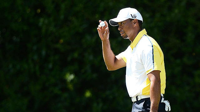 Tiger var að klára fyrri 9 á 33 höggum, þar sem hann fékk 3 fugla og enga skolla!!!