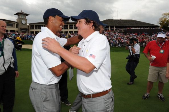 Mikið er spáð í hvað þeim fór á milli en flestir golffréttamenn hefðu gjarnan vilja vera flugur á golfsettum þeirra.