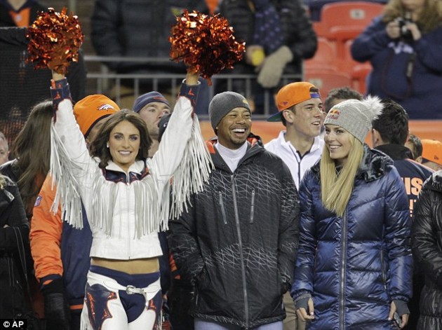 Tiger og Lindsey fóru saman á NFL leik þ.e. leik Denver Broncos og Kansas City Chiefs, í bandaríska ruðningsboltanum.