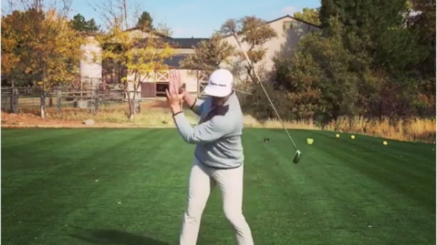Hér í meðfylgjandi myndskeiði má sjá ansi hreint snotra golfbrellu.