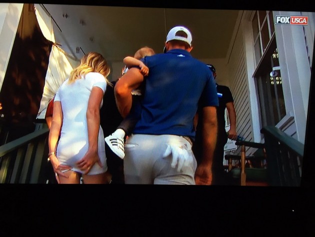 Tökumaður nokkur hefir verið gagnrýndur harðlega á félagsmiðlunum fyrir tökur á Paulinu Gretzky eftir sigur manns hennar Dustin Johnson á Opna bandaríska (US Open).