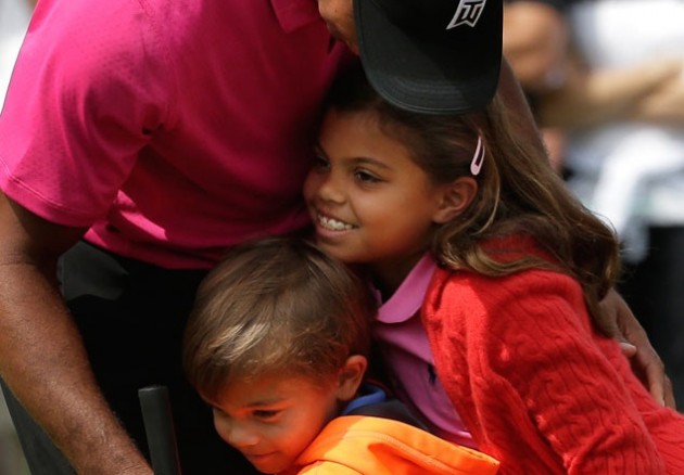 Þar er átt við börn Tiger og Elínar Nordegren, Sam og Charlie, en þau eru á Augusta National og ætla að vera kylfuberar pabba síns í par-3 mótinu í dag og horfa á hann á The Masters risamótinu.
