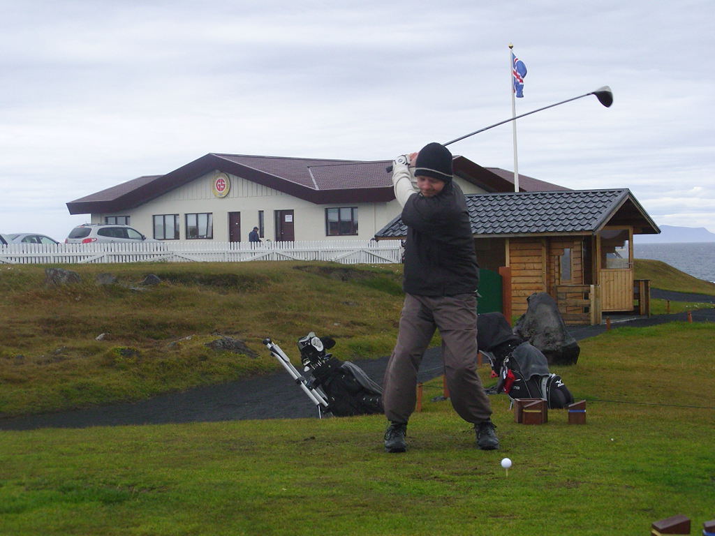 Elvar Bjarki Friðriksson slær af 1. teig á 1. móti Ecco haustmótaraðar GS Úrslit: Árni efstur á 1. móti Ecco haustmótaraðar GS