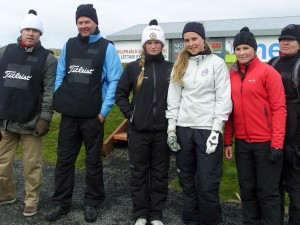 Hörður (lengst til vinstri) í kaddýstörfum fyrir Söru Margréti (þriðja frá vinstri) á Arionbankamótaröð unglinga 4. júní 2011 í Leirunni. Mynd: Golf 1