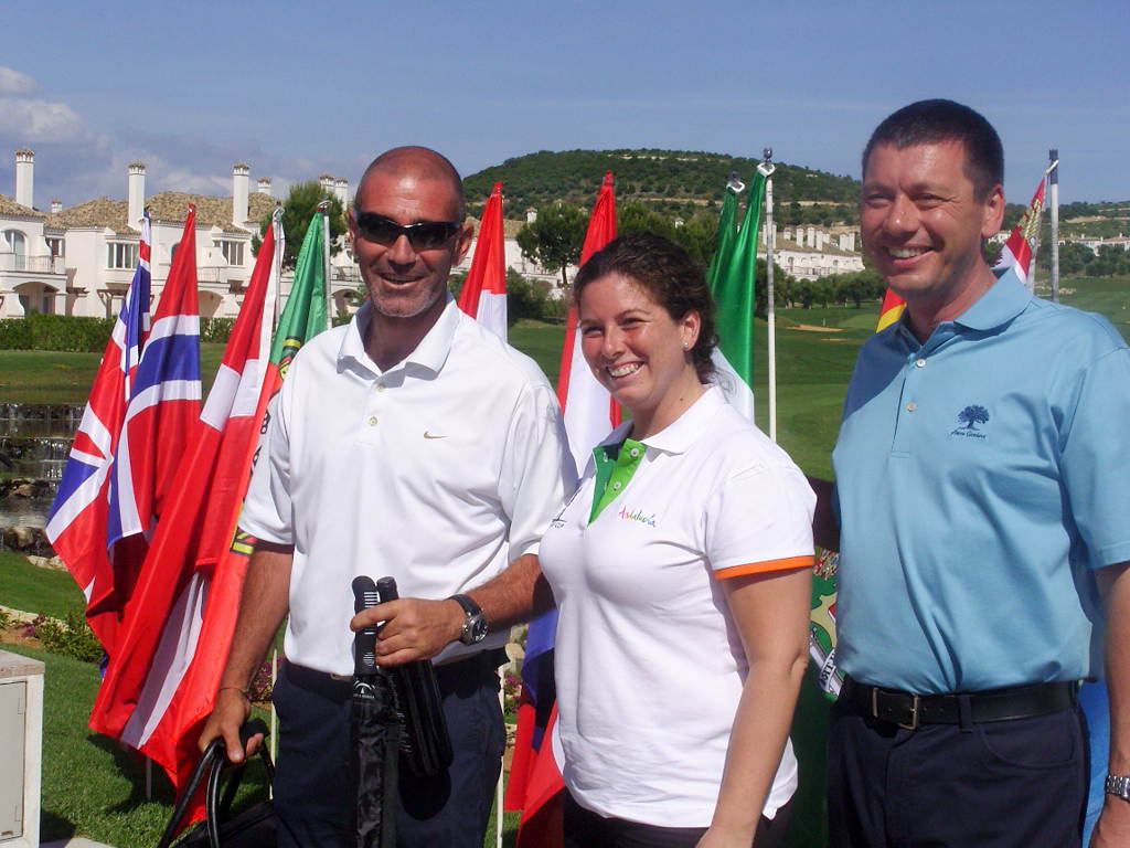 Maurizio Veloccia (t.v.) ásamt starfsmanni San Roque golfvallarins í Cadiz (f.m) og fararstjóra (t.h.) Mynd: Golf 1.