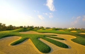 Nóg af sandglompum á Montgomerie golfvellinum í Dubai, sem er sérstæðasti golfvöllur sem Sasha Zelenka hefir spilað á!