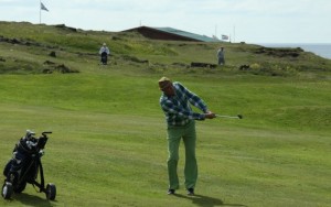 Hver er sérstæðasti golfvöllur sem þú hefir spilað á og af hverju? Það er Katlavöllur á Húsavík. Hann kom á óvart – sérstaklega par-5 4. brautin, sem er í dogleg og endar á upphækkuðu gríni.