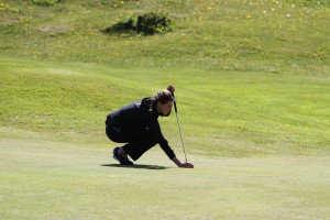 Sunna skoðar púttlínuna í Egils Gull mótinu í Vestmannaeyjum á Eimskipsmótaröðinni, sumarið 2011. Mynd: gsimyndir.net