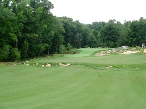 Hver er sérstæðasti golfvöllur sem þú hefir spilað á og af hverju? Tot Hill Farm Golf Club í Norður Karolínu. Mætti halda að golfarkitektinn hefði verið í allt öðrum heimi þegar hann hannaði völlinn.