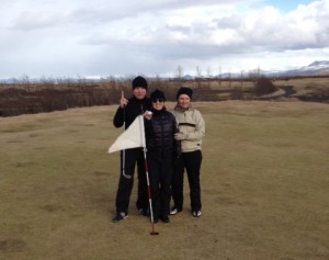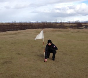 Vala fór holu í höggi í fyrsta sinn á par-3 13. holu Strandarvallar á Hellu, á Skírdag 28. mars 2013. Mynd: Í eigu Völu