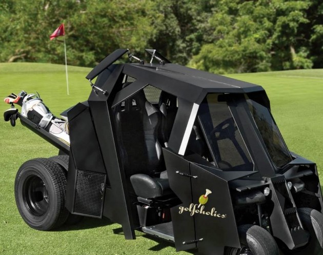 Hann er vígalegur golfbíllinn á myndinni – eins og Batmobile úr kvikmyndinni um Leðurblökumanninn.