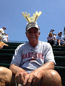 Þegar hann gekk t.a.m. að 1. teig mætti honum t.a.m. maður með „hreindýrahornshatt“ sem eru vinsælir minjagripir (sjá mynd hér að neðan):