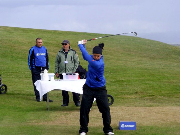 Valdís Þóra slær 1. höggið á glæsihringnum á Íslandsmótinu í höggleik 2012. Mynd: Golf 1. Íslandsmótið í höggleik – Valdís Þóra Jónsdóttir: „Geri mitt besta!“